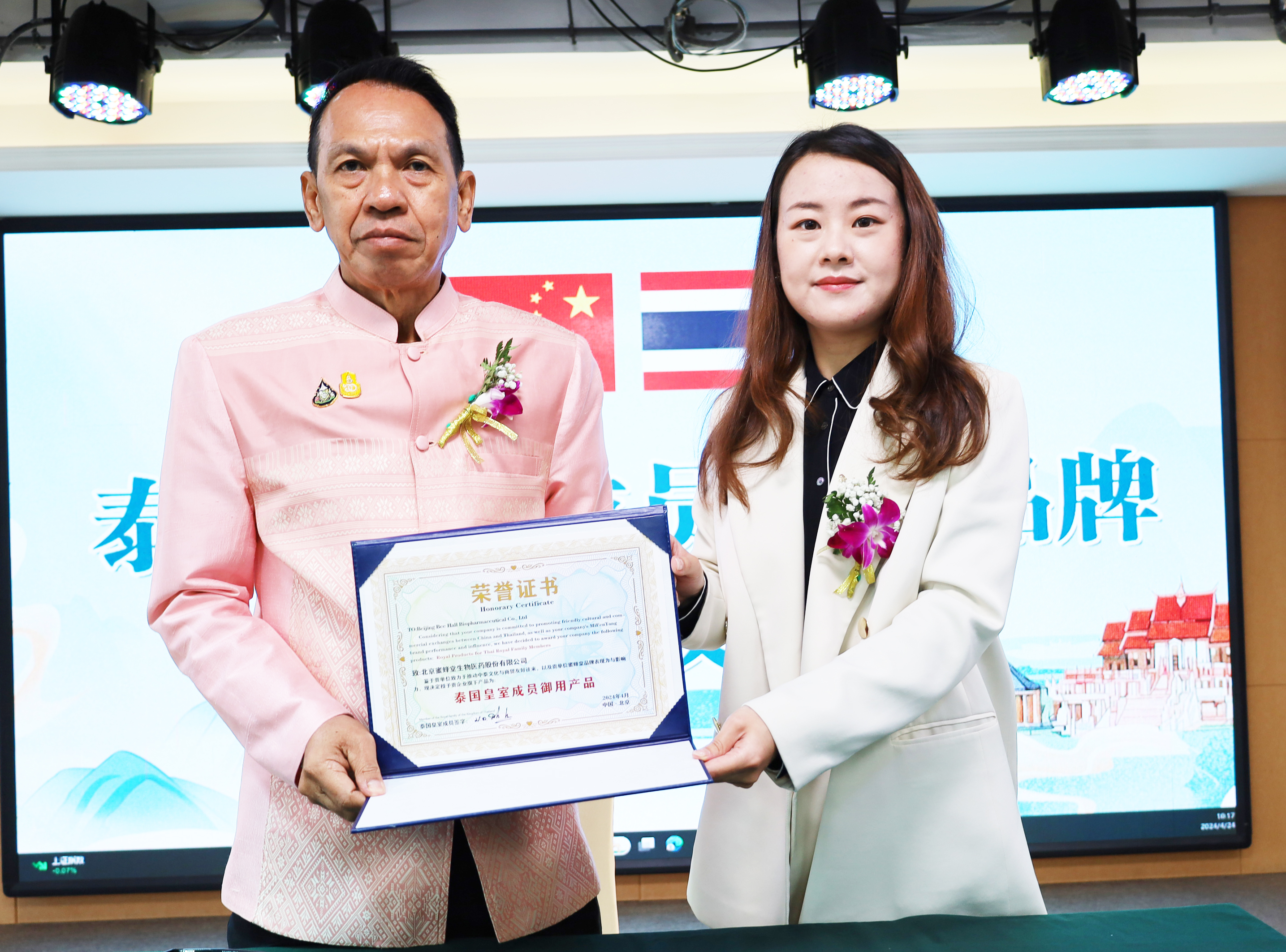 泰國親王善猜向蜜蜂堂頒發(fā)中泰經貿文化交流友好榮譽證書企業(yè)