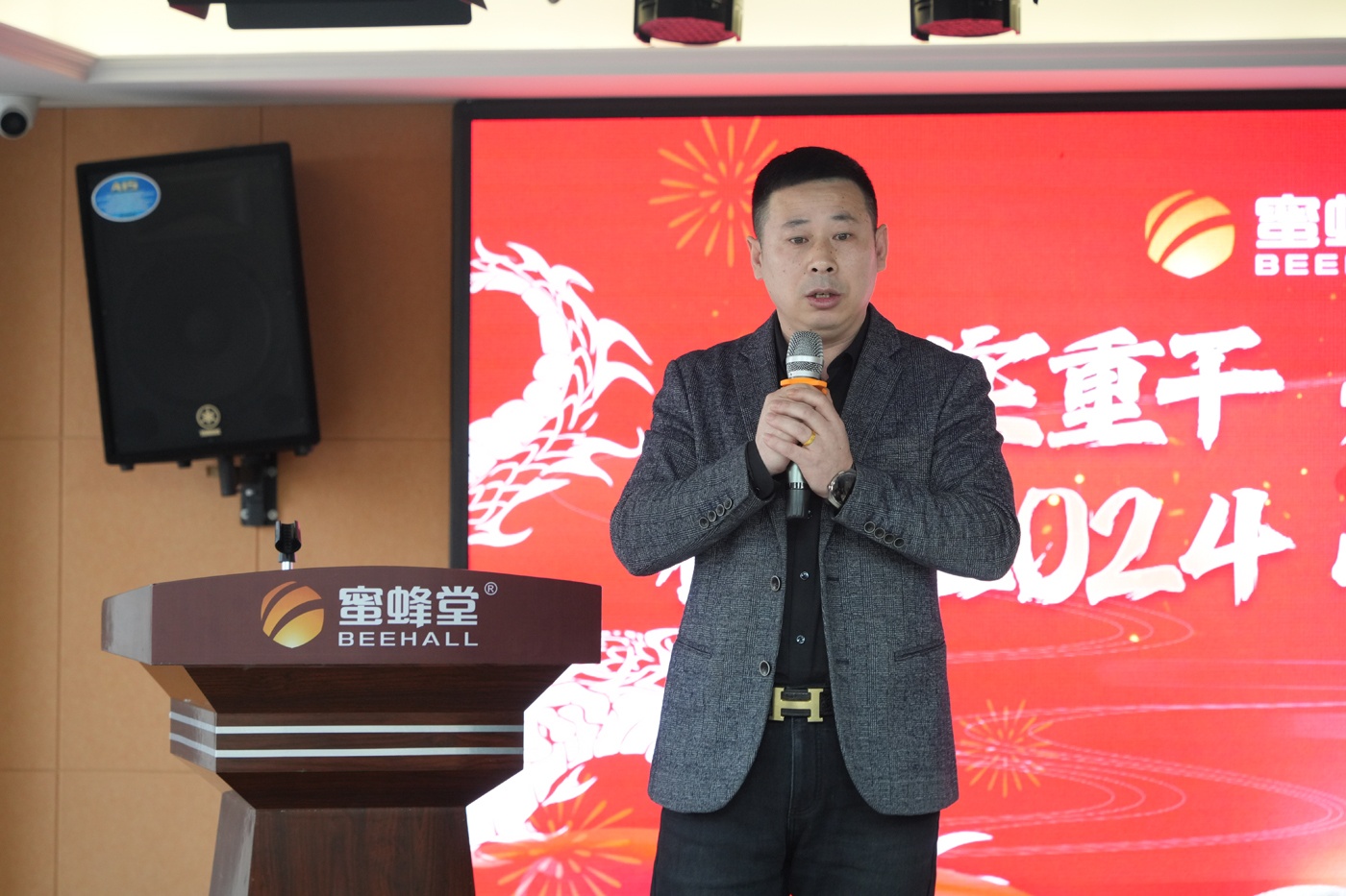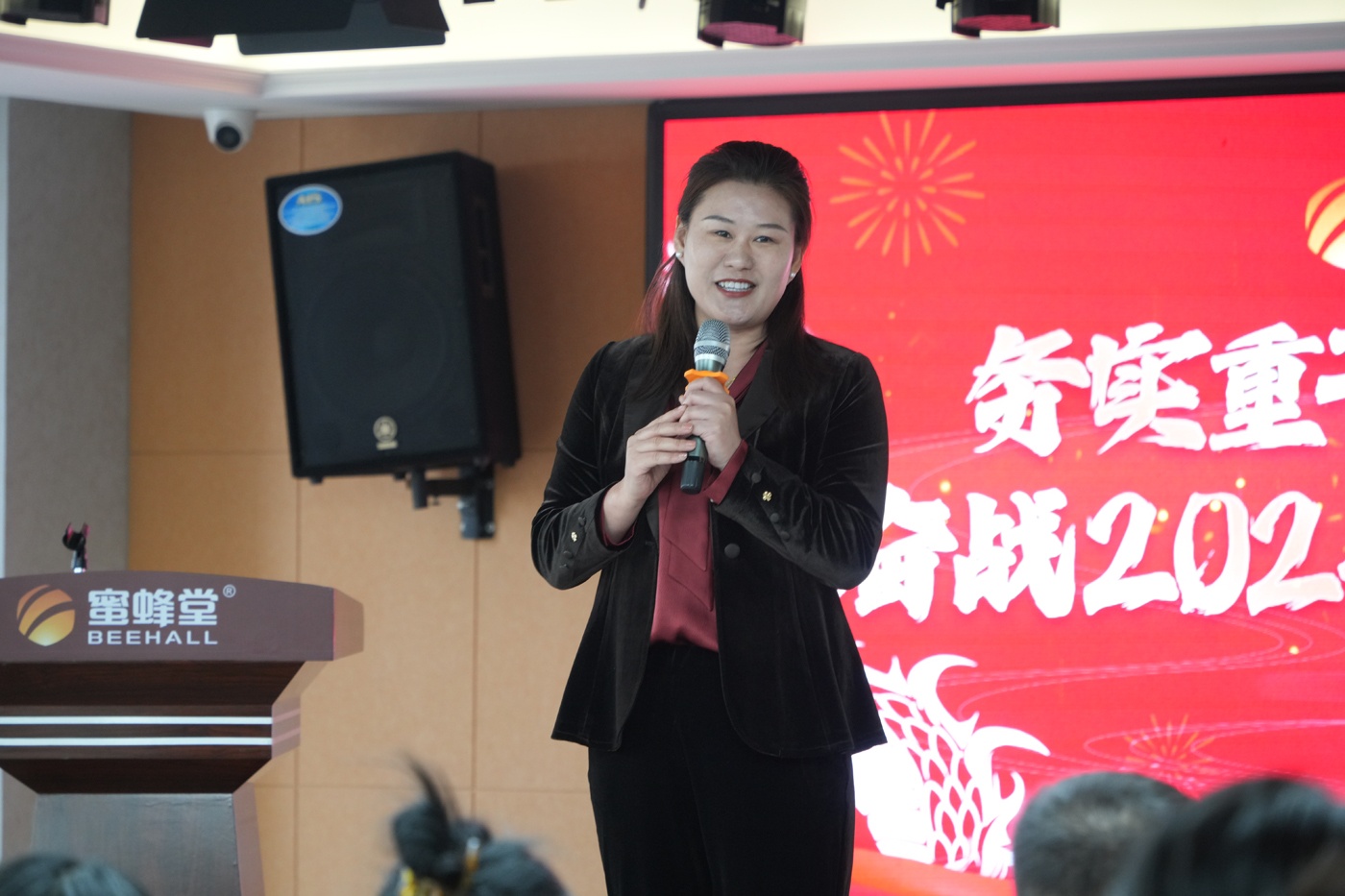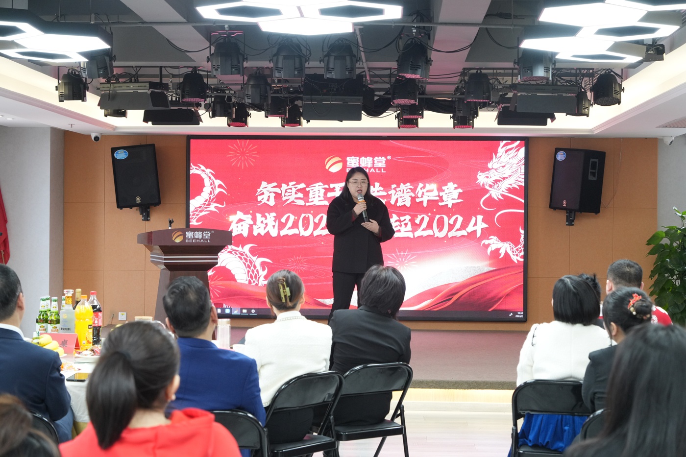 順勢(shì)而為、不負(fù)所托、聚力同心、拼搏奮進(jìn)、成績(jī)卓越、可喜可賀。蜜蜂堂集團(tuán)董事長(zhǎng)任總首先發(fā)表講話,盤點(diǎn)了2023年蜜蜂堂事業(yè)部、御蜂坊事業(yè)部、外貿(mào)事業(yè)部、藥線事業(yè)部、電商事業(yè)部等等事業(yè)部的業(yè)績(jī)?cè)鲩L(zhǎng)率,蜜蜂堂上榜北京市大興區(qū)企業(yè)業(yè)績(jī)?cè)鲩L(zhǎng)名單。任總表?yè)P(yáng)了蜜蜂堂工廠各生產(chǎn)中心、設(shè)備中心、物流中心、采購(gòu)中心及大行政中心在2023年出色地完成各項(xiàng)任務(wù)。