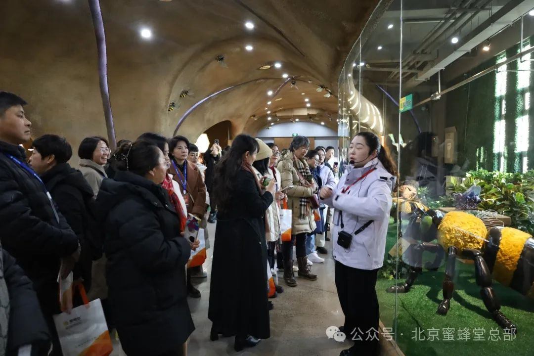 參與此次中藥飲片精品項(xiàng)目發(fā)布會(huì)的精英代表們?cè)诒本┟鄯涮霉ぷ魅藛T的陪伴下參觀了蜜蜂王國博物館,見識(shí)了在地球上活了1.5億年的小蜜蜂是大自然贈(zèng)送給人類的無限寶藏,參觀了北京蜜蜂堂企業(yè)發(fā)展歷程及企業(yè)文化。